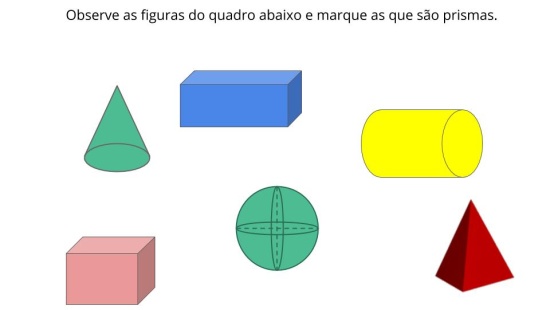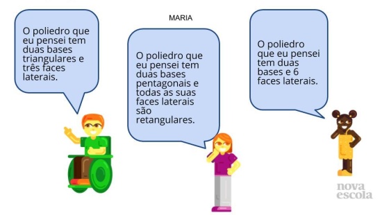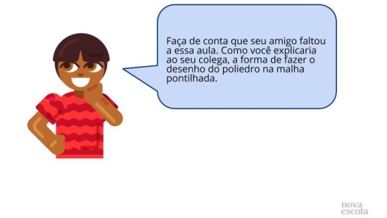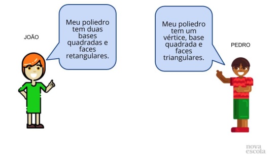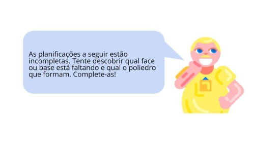- É importante se certificar de que os alunos reconheçam os termos tridimensional e planificado; prismas e pirâmides neste momento é importante para que os alunos pensem sobre, porém no decorrer das atividades terão oportunidade de conceituarem.