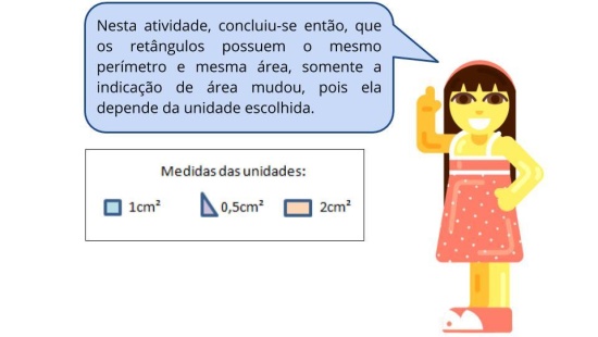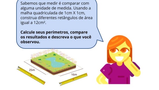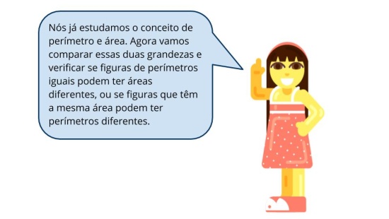 (EF05MA20) Concluir, por meio de investigações, que figuras de perímetros iguais podem ter áreas diferentes e que, também, figuras que têm a mesma área podem ter perímetros diferentes.