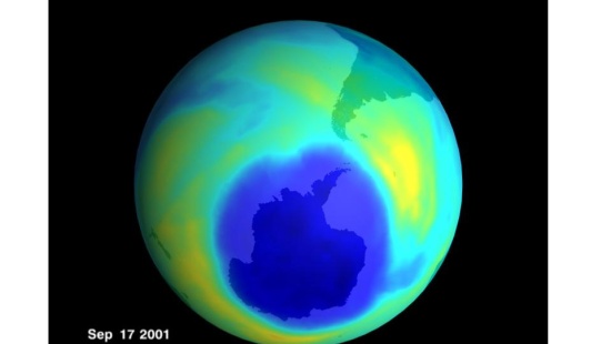 NASA, Ozone 2001 sept 17. Wikipedia. Disponível em: <https://pt.wikipedia.org/wiki/Ficheiro:Ozone_2001sept17_lrg.jpg>. Acesso em: 24 abr 2019.