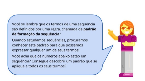 Reconhecer o padrão de uma sequência numérica ou figurativa e expressá-lo usando escrita corrente ou uma representação simbólica.