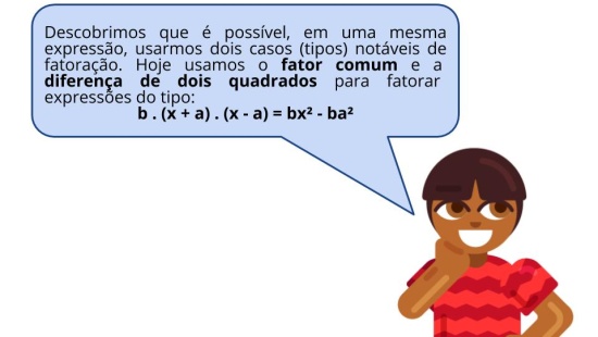 EF09MA09 - Compreender os processo de fatoração de expressões algébricas, com base em suas relações com os produtos notáveis, para resolver e elaborar problemas que possam ser representados por equações polinomiais do 2º Grau.